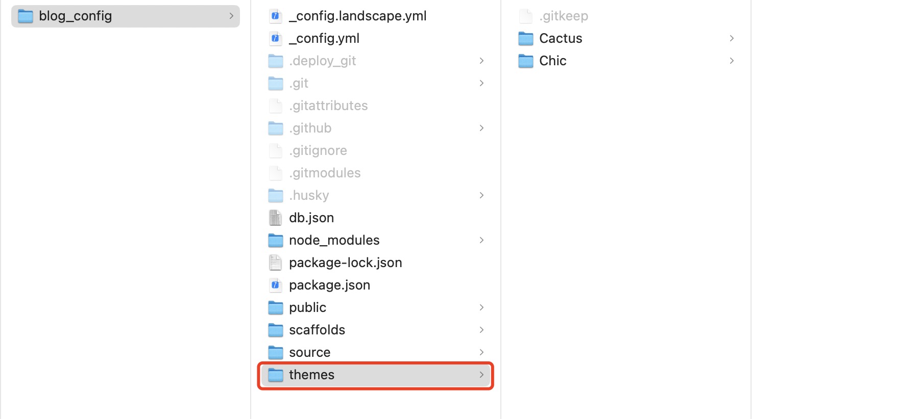 打开项目根目录下的_config.yml文件,将themes的内容设置为想要使用的主题。注意这里的名称需要与themes下主题所在的文件夹的名称一致。1