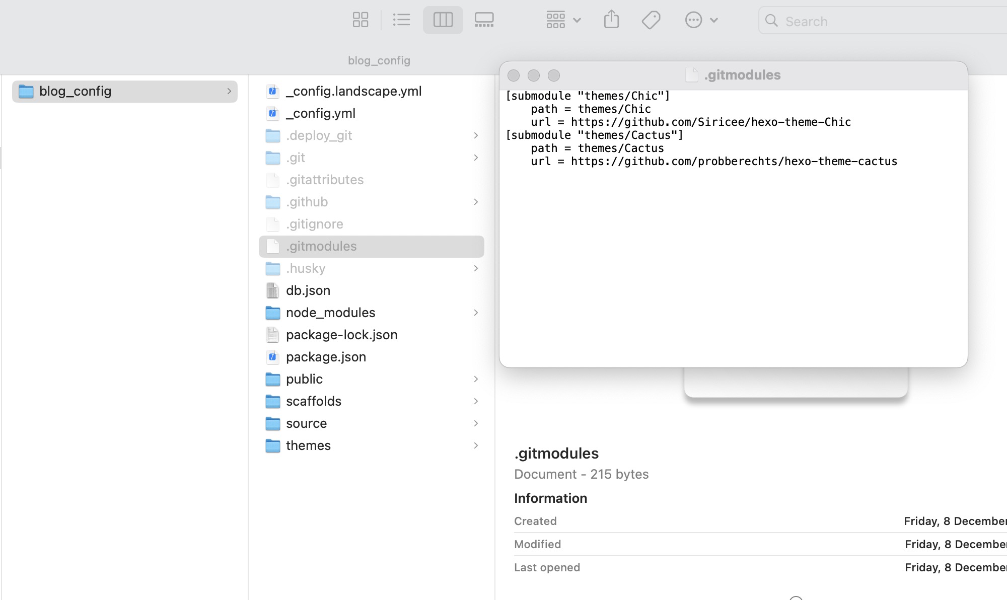 Finder中进入项目根目录,打开.gitmodules文件,在文件中声明本项目所引用的子模块。以下是一个样例:1