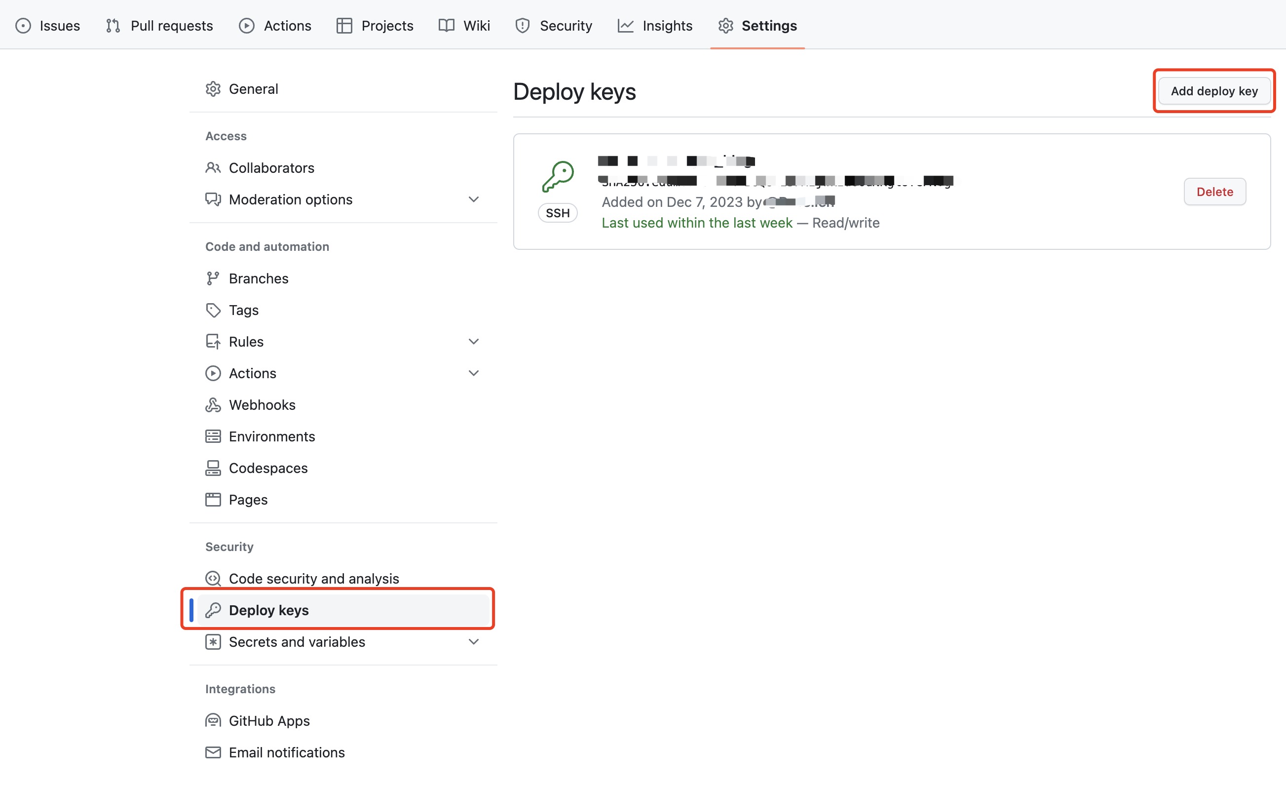 GitHub中,进入username.github.io仓库,切换至Settings,在侧边栏Security分类下找到Deploy Keys。
